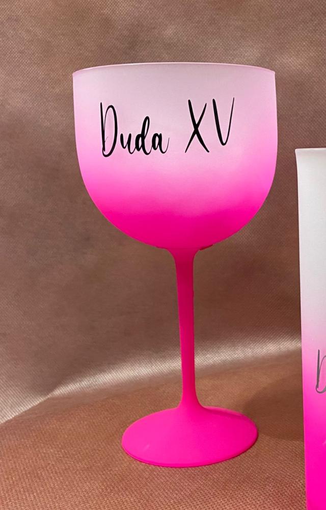 Taça de acrílico em diversas cores, personalizada com nomes ou desenhos.
